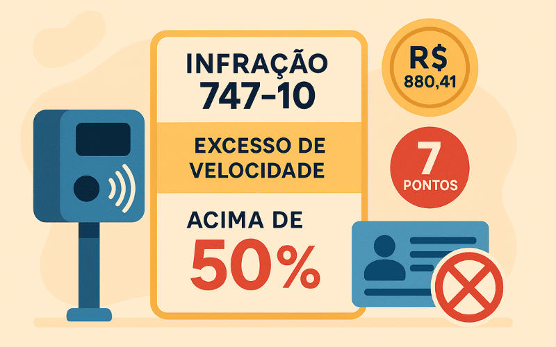 A Infração 747-10 tem efeitos mais severos que as demais por excesso de velocidade, não só pelo valor da multa, mas pela suspensão imediata do direito de dirigir.