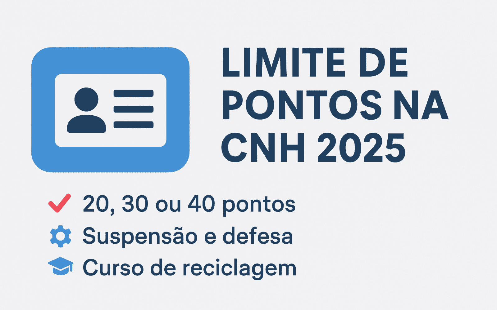 O limite de pontos na CNH é o total máximo de pontos que um motorista pode acumular em 12 meses antes de ser penalizado com a suspensão do direito de dirigir. Cada infração cometida no trânsito gera uma quantidade específica de pontos na carteira, e esse controle é feito pelos Detrans estaduais.